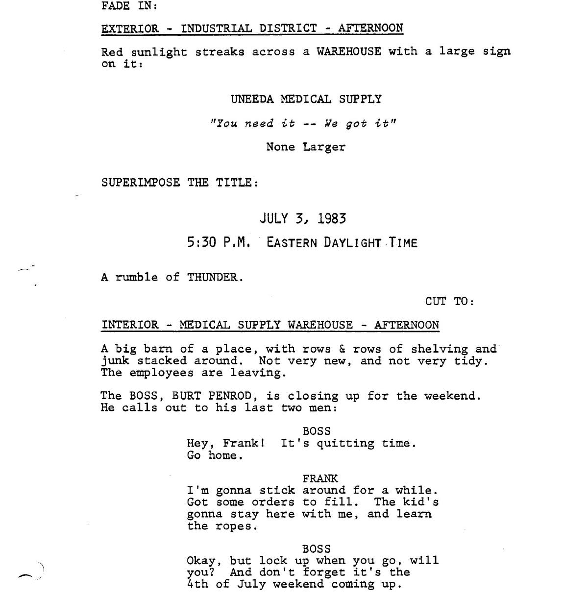 Page One is a daily Go Into The Story series featuring the first page of movie and TV scripts from the classic era to contemporary times. Comparing them is an excellent way to study a variety of writing styles and see how professional writers start a story.